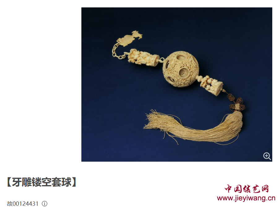 - 故宫博物院馆藏清牙雕镂空套球上的套色金钱盘长纽结