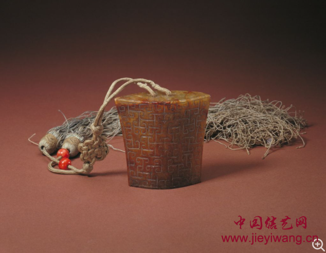 - 这件玉云纹珌为战国时期玉器,属清宫旧藏,文物编号故 00084032,尺寸为高 6.3 厘米、宽 5.95 厘米、厚 2.25 厘米。